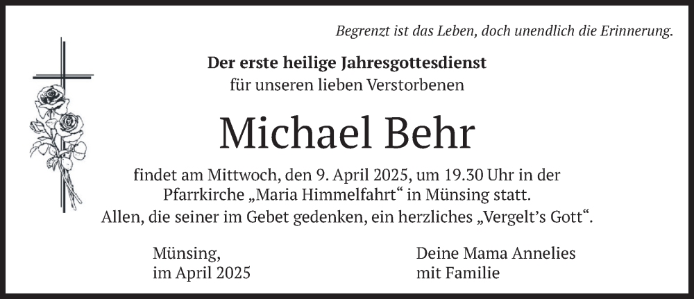 Hier finden Sie alle Traueranzeigen aus der Zeitung, die bisher für Michael Behr erschienen sind. Weitere Traueranzeigen, die in der Zeitung erscheinen, werden hier ebenfalls aufgelistet