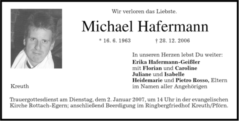 Hier finden Sie alle Traueranzeigen aus der Zeitung, die bisher für Michael Hafermann erschienen sind. Weitere Traueranzeigen, die in der Zeitung erscheinen, werden hier ebenfalls aufgelistet