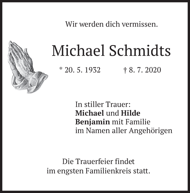 Hier finden Sie alle Traueranzeigen aus der Zeitung, die bisher für Michael Schmidts erschienen sind. Weitere Traueranzeigen, die in der Zeitung erscheinen, werden hier ebenfalls aufgelistet