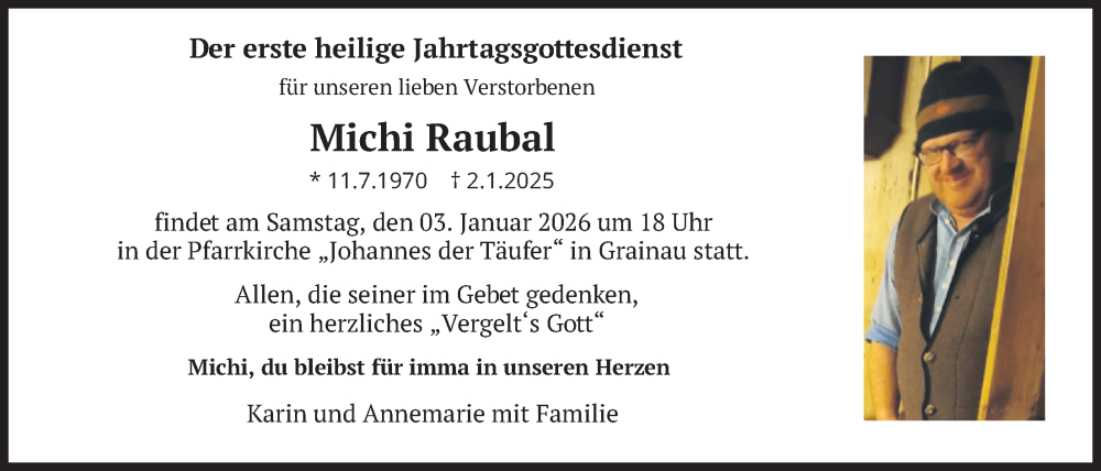 Hier finden Sie alle Traueranzeigen aus der Zeitung, die bisher für Michi Raubal erschienen sind. Weitere Traueranzeigen, die in der Zeitung erscheinen, werden hier ebenfalls aufgelistet