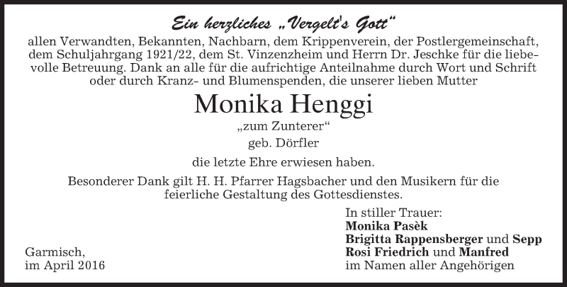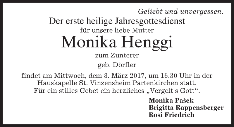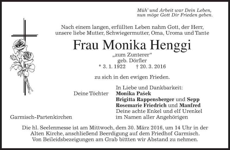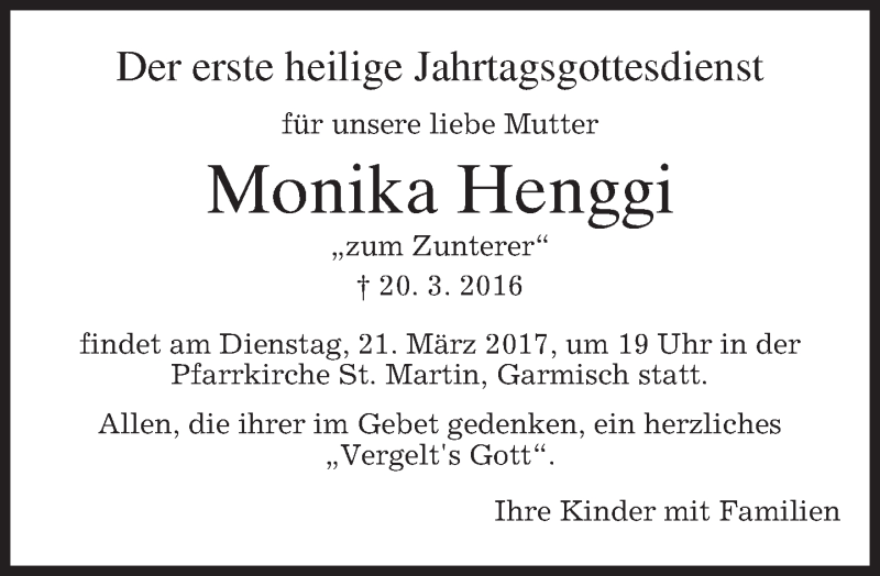 Hier finden Sie alle Traueranzeigen aus der Zeitung, die bisher für Monika Henggi erschienen sind. Weitere Traueranzeigen, die in der Zeitung erscheinen, werden hier ebenfalls aufgelistet