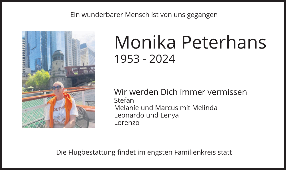 Hier finden Sie alle Traueranzeigen aus der Zeitung, die bisher für Monika Peterhans erschienen sind. Weitere Traueranzeigen, die in der Zeitung erscheinen, werden hier ebenfalls aufgelistet