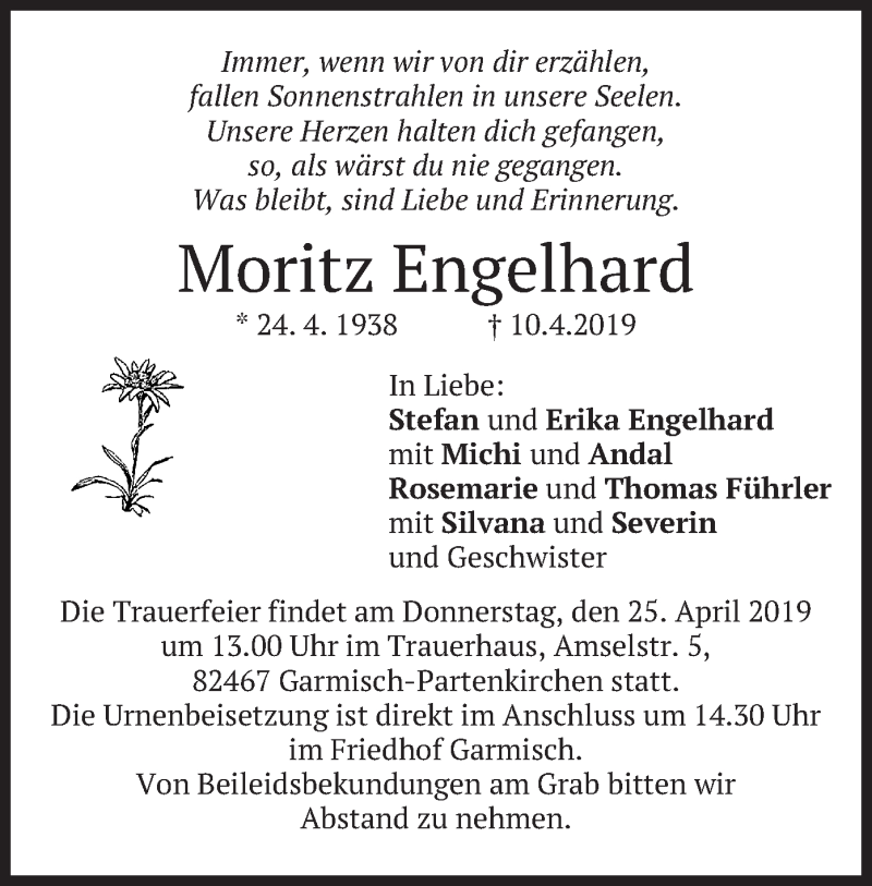 Hier finden Sie alle Traueranzeigen aus der Zeitung, die bisher für Moritz Engelhard erschienen sind. Weitere Traueranzeigen, die in der Zeitung erscheinen, werden hier ebenfalls aufgelistet