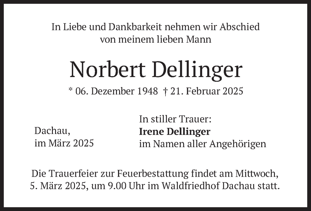 Hier finden Sie alle Traueranzeigen aus der Zeitung, die bisher für Norbert Dellinger erschienen sind. Weitere Traueranzeigen, die in der Zeitung erscheinen, werden hier ebenfalls aufgelistet