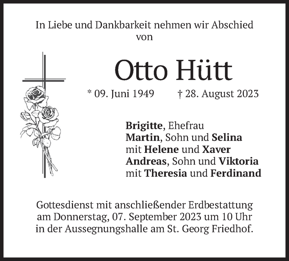 Hier finden Sie alle Traueranzeigen aus der Zeitung, die bisher für Otto Hütt erschienen sind. Weitere Traueranzeigen, die in der Zeitung erscheinen, werden hier ebenfalls aufgelistet