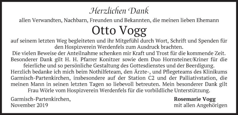 Hier finden Sie alle Traueranzeigen aus der Zeitung, die bisher für Otto Vogg erschienen sind. Weitere Traueranzeigen, die in der Zeitung erscheinen, werden hier ebenfalls aufgelistet