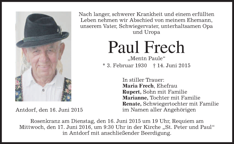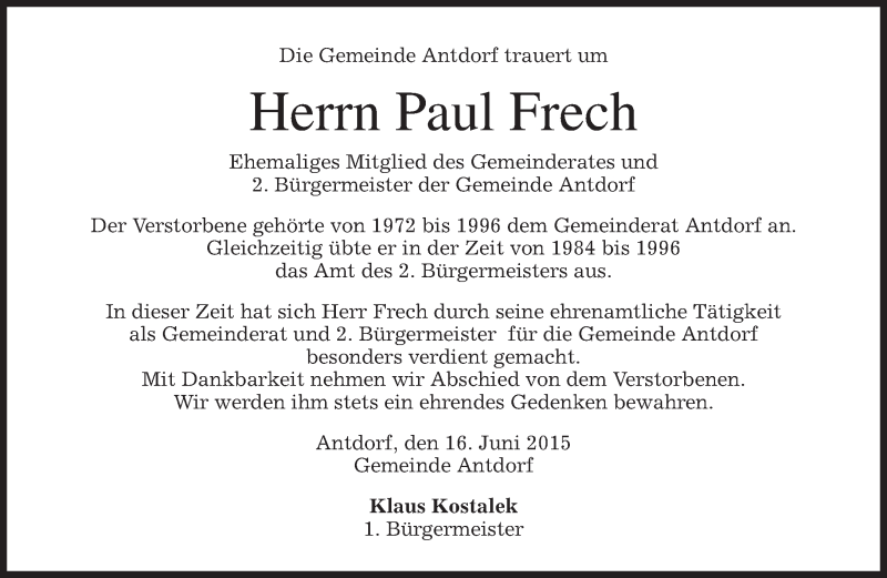 Hier finden Sie alle Traueranzeigen aus der Zeitung, die bisher für Paul Frech erschienen sind. Weitere Traueranzeigen, die in der Zeitung erscheinen, werden hier ebenfalls aufgelistet