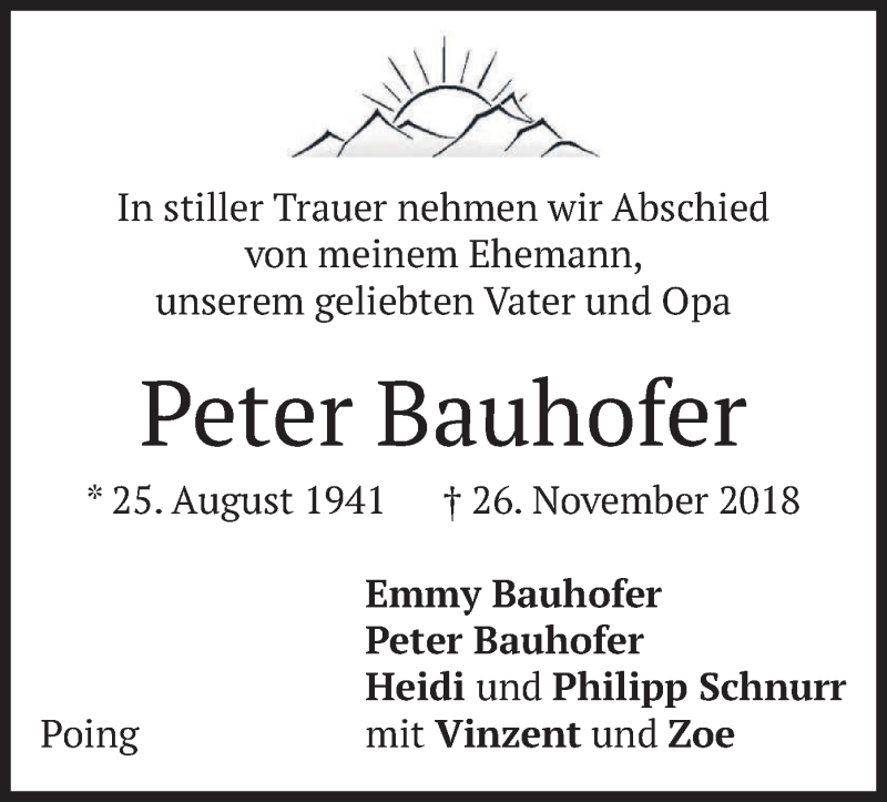 Hier finden Sie alle Traueranzeigen aus der Zeitung, die bisher für Peter Bauhofer erschienen sind. Weitere Traueranzeigen, die in der Zeitung erscheinen, werden hier ebenfalls aufgelistet