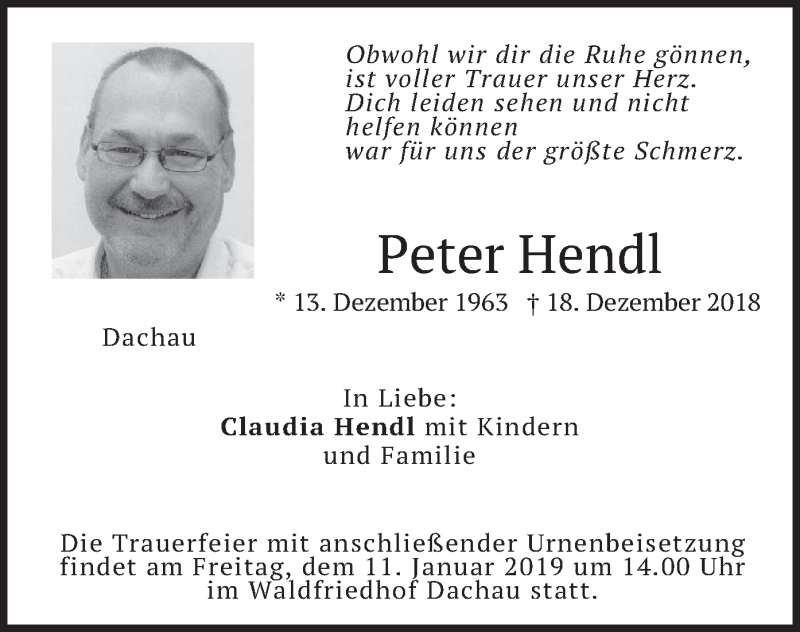 Hier finden Sie alle Traueranzeigen aus der Zeitung, die bisher für Peter Hendl erschienen sind. Weitere Traueranzeigen, die in der Zeitung erscheinen, werden hier ebenfalls aufgelistet