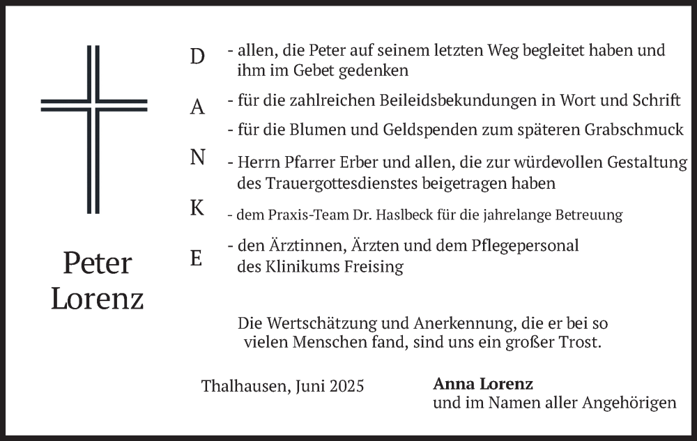 Hier finden Sie alle Traueranzeigen aus der Zeitung, die bisher für Peter Lorenz erschienen sind. Weitere Traueranzeigen, die in der Zeitung erscheinen, werden hier ebenfalls aufgelistet