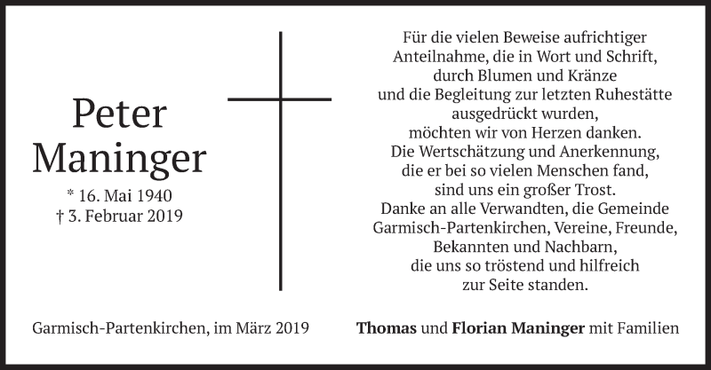 Hier finden Sie alle Traueranzeigen aus der Zeitung, die bisher für Peter Maninger erschienen sind. Weitere Traueranzeigen, die in der Zeitung erscheinen, werden hier ebenfalls aufgelistet