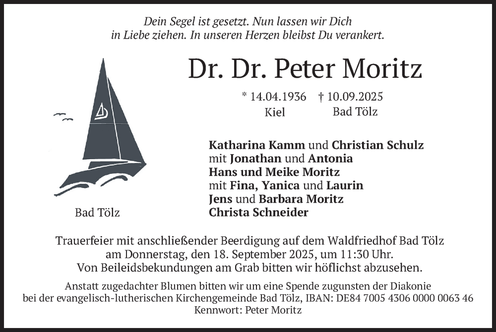 Hier finden Sie alle Traueranzeigen aus der Zeitung, die bisher für Peter Moritz erschienen sind. Weitere Traueranzeigen, die in der Zeitung erscheinen, werden hier ebenfalls aufgelistet