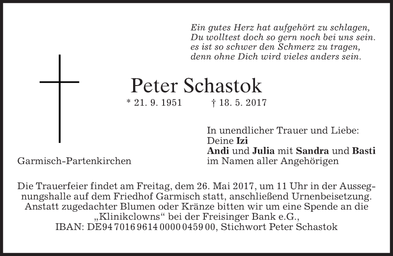 Hier finden Sie alle Traueranzeigen aus der Zeitung, die bisher für Peter Schastok erschienen sind. Weitere Traueranzeigen, die in der Zeitung erscheinen, werden hier ebenfalls aufgelistet