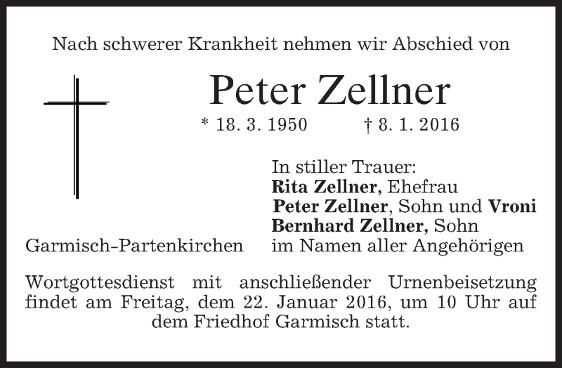 Hier finden Sie alle Traueranzeigen aus der Zeitung, die bisher für Peter Zellner erschienen sind. Weitere Traueranzeigen, die in der Zeitung erscheinen, werden hier ebenfalls aufgelistet