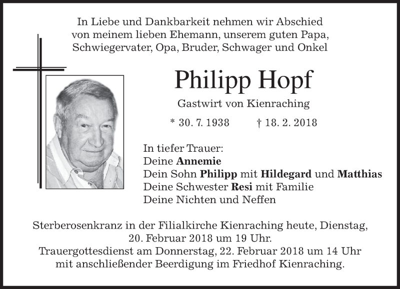 Hier finden Sie alle Traueranzeigen aus der Zeitung, die bisher für Philipp Hopf erschienen sind. Weitere Traueranzeigen, die in der Zeitung erscheinen, werden hier ebenfalls aufgelistet