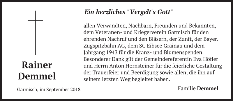 Hier finden Sie alle Traueranzeigen aus der Zeitung, die bisher für Rainer Demmel erschienen sind. Weitere Traueranzeigen, die in der Zeitung erscheinen, werden hier ebenfalls aufgelistet
