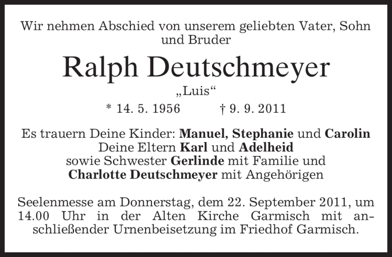 Hier finden Sie alle Traueranzeigen aus der Zeitung, die bisher für Ralph Deutschmeyer erschienen sind. Weitere Traueranzeigen, die in der Zeitung erscheinen, werden hier ebenfalls aufgelistet