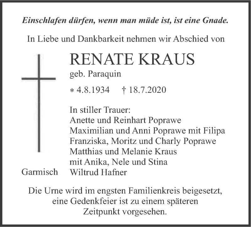 Hier finden Sie alle Traueranzeigen aus der Zeitung, die bisher für Renate Kraus erschienen sind. Weitere Traueranzeigen, die in der Zeitung erscheinen, werden hier ebenfalls aufgelistet