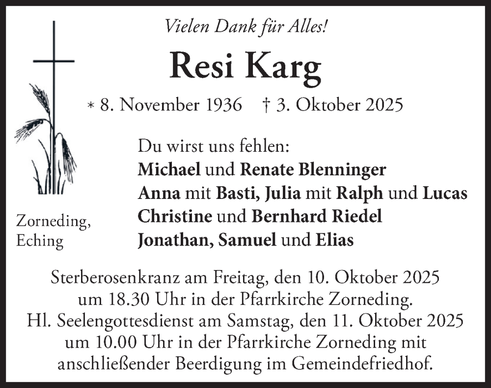 Hier finden Sie alle Traueranzeigen aus der Zeitung, die bisher für Resi Karg erschienen sind. Weitere Traueranzeigen, die in der Zeitung erscheinen, werden hier ebenfalls aufgelistet