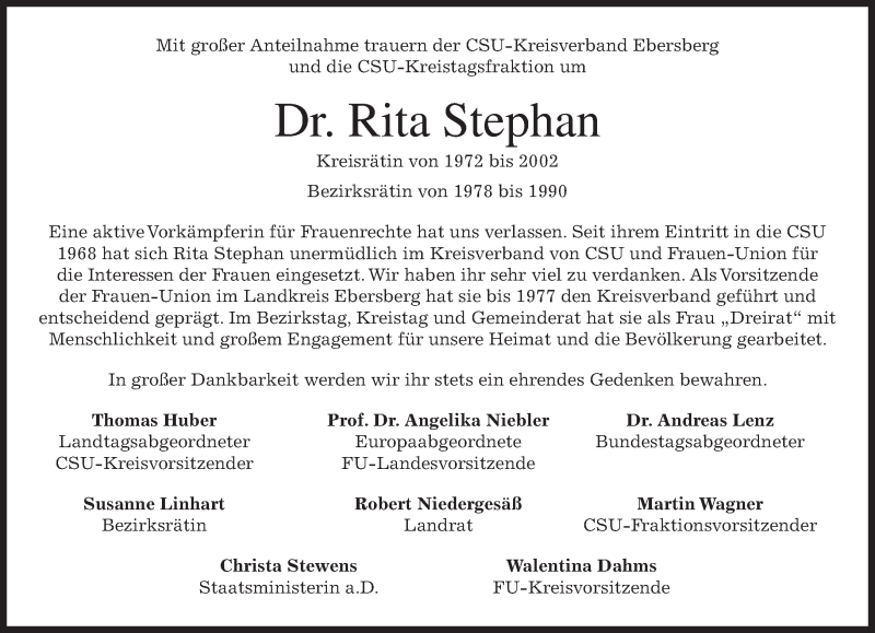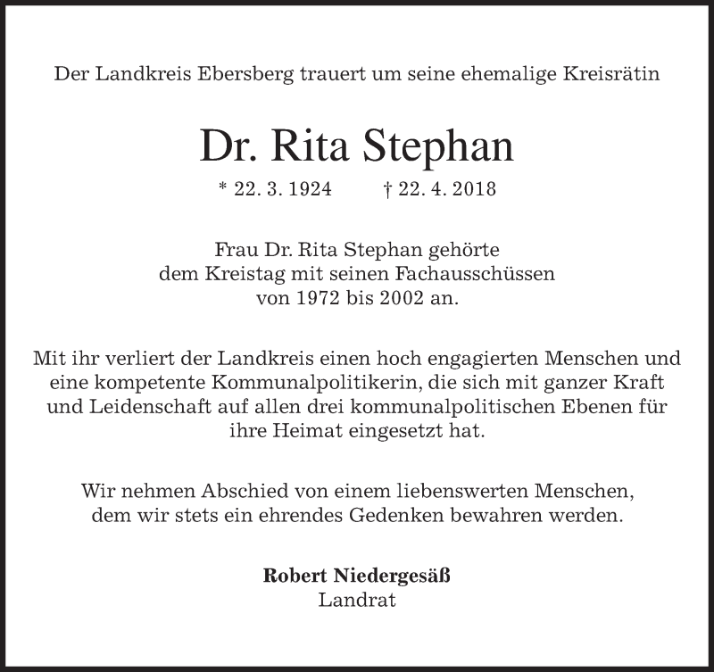 Hier finden Sie alle Traueranzeigen aus der Zeitung, die bisher für Rita Stephan erschienen sind. Weitere Traueranzeigen, die in der Zeitung erscheinen, werden hier ebenfalls aufgelistet
