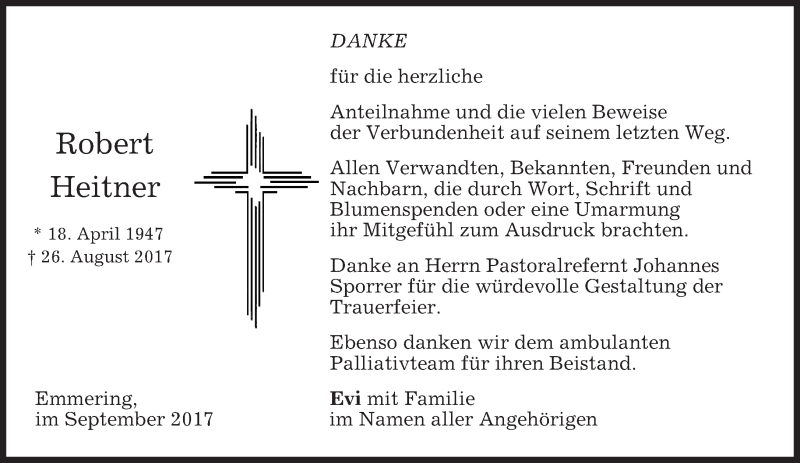 Hier finden Sie alle Traueranzeigen aus der Zeitung, die bisher für Robert Heitner erschienen sind. Weitere Traueranzeigen, die in der Zeitung erscheinen, werden hier ebenfalls aufgelistet