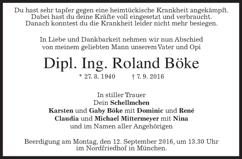 Hier finden Sie alle Traueranzeigen aus der Zeitung, die bisher für Roland Böke erschienen sind. Weitere Traueranzeigen, die in der Zeitung erscheinen, werden hier ebenfalls aufgelistet