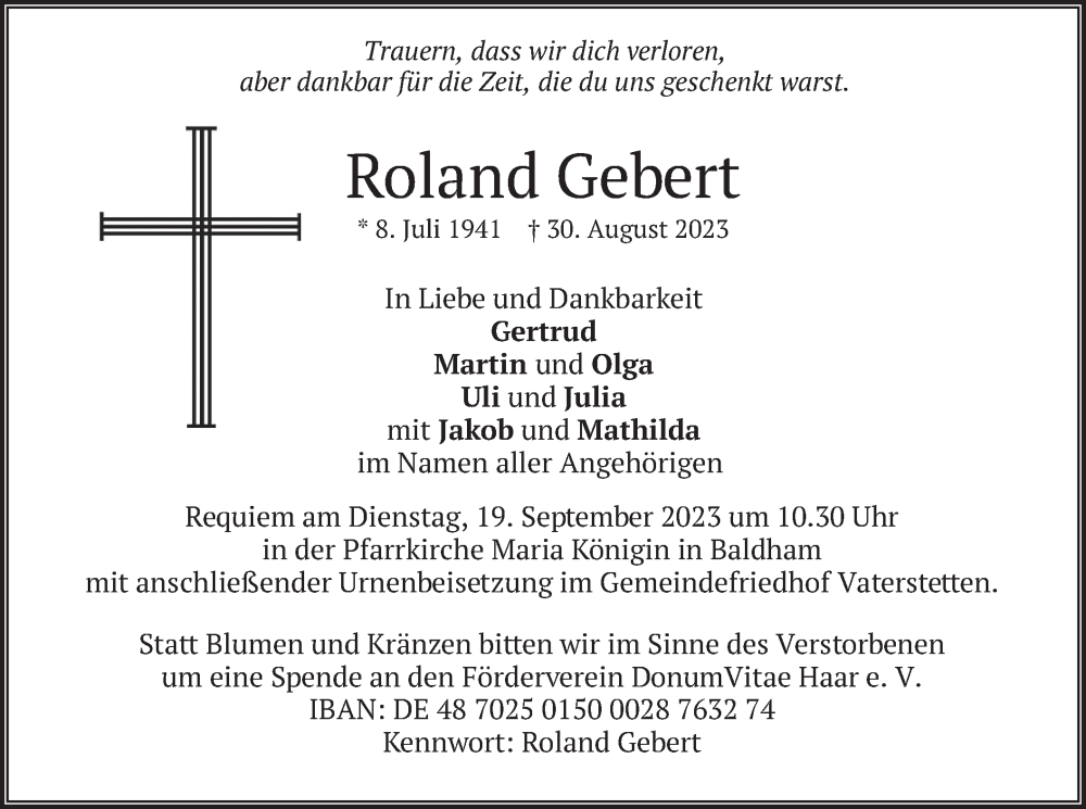 Hier finden Sie alle Traueranzeigen aus der Zeitung, die bisher für Roland Gebert erschienen sind. Weitere Traueranzeigen, die in der Zeitung erscheinen, werden hier ebenfalls aufgelistet