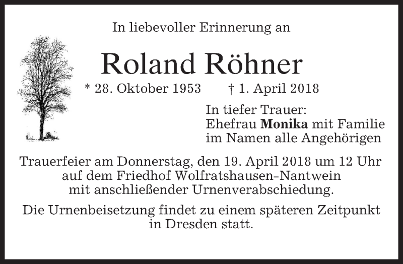 Hier finden Sie alle Traueranzeigen aus der Zeitung, die bisher für Roland Röhner erschienen sind. Weitere Traueranzeigen, die in der Zeitung erscheinen, werden hier ebenfalls aufgelistet