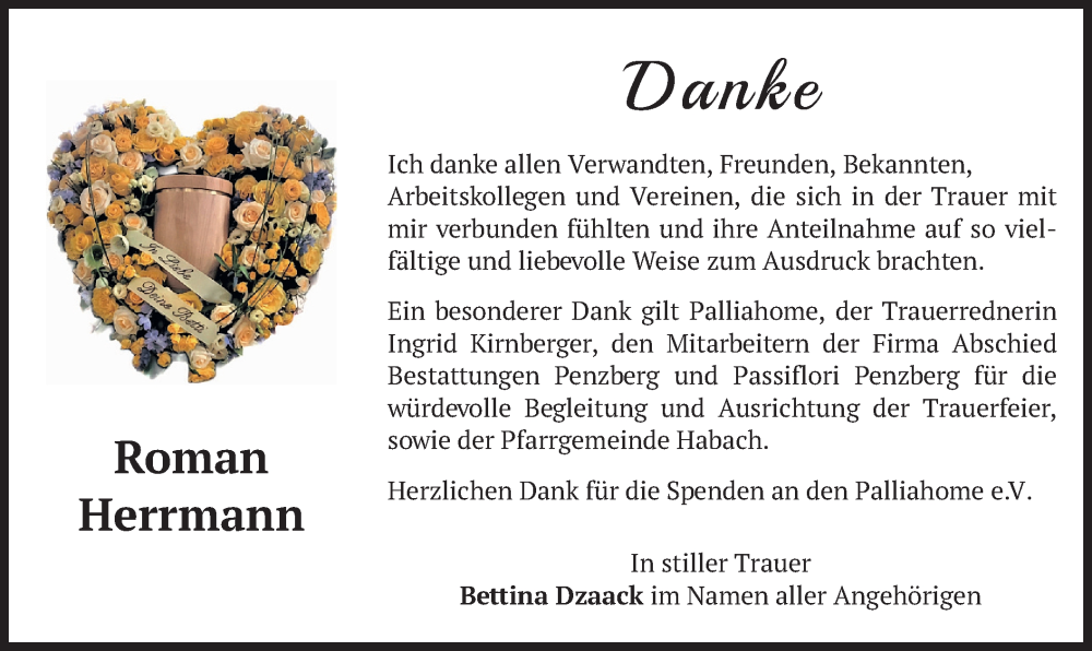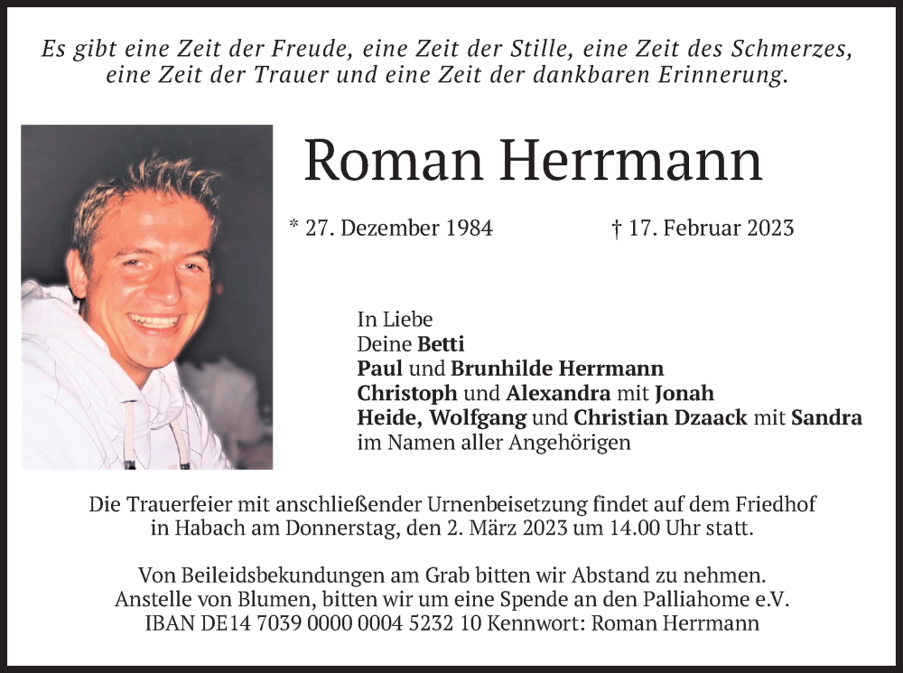 Hier finden Sie alle Traueranzeigen aus der Zeitung, die bisher für Roman Herrmann erschienen sind. Weitere Traueranzeigen, die in der Zeitung erscheinen, werden hier ebenfalls aufgelistet