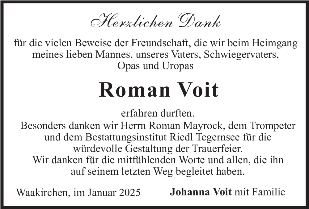 Hier finden Sie alle Traueranzeigen aus der Zeitung, die bisher für Roman Voit erschienen sind. Weitere Traueranzeigen, die in der Zeitung erscheinen, werden hier ebenfalls aufgelistet