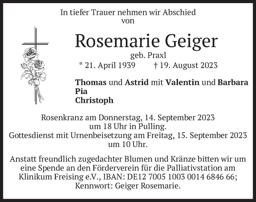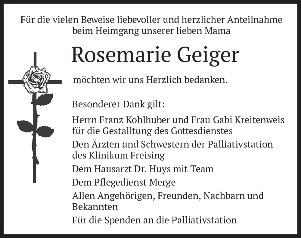 Hier finden Sie alle Traueranzeigen aus der Zeitung, die bisher für Rosemarie Geiger erschienen sind. Weitere Traueranzeigen, die in der Zeitung erscheinen, werden hier ebenfalls aufgelistet