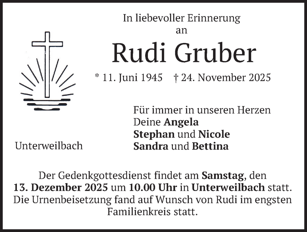 Hier finden Sie alle Traueranzeigen aus der Zeitung, die bisher für Rudi Gruber erschienen sind. Weitere Traueranzeigen, die in der Zeitung erscheinen, werden hier ebenfalls aufgelistet