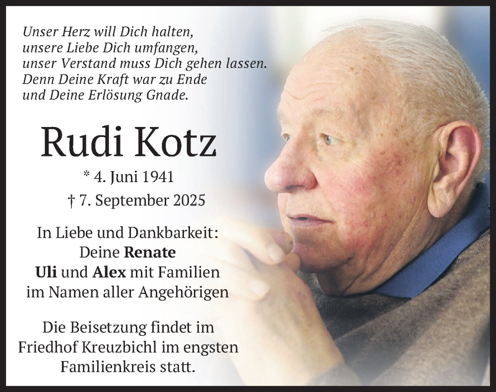 Hier finden Sie alle Traueranzeigen aus der Zeitung, die bisher für Rudi Kotz erschienen sind. Weitere Traueranzeigen, die in der Zeitung erscheinen, werden hier ebenfalls aufgelistet