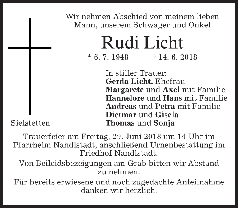 Hier finden Sie alle Traueranzeigen aus der Zeitung, die bisher für Rudi Licht erschienen sind. Weitere Traueranzeigen, die in der Zeitung erscheinen, werden hier ebenfalls aufgelistet