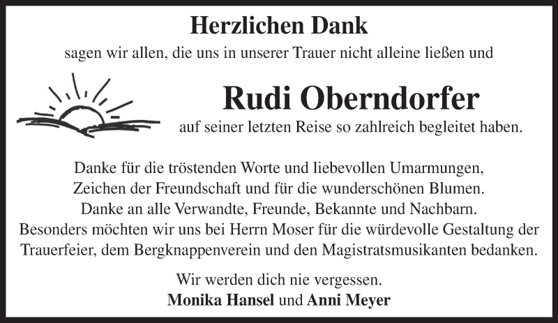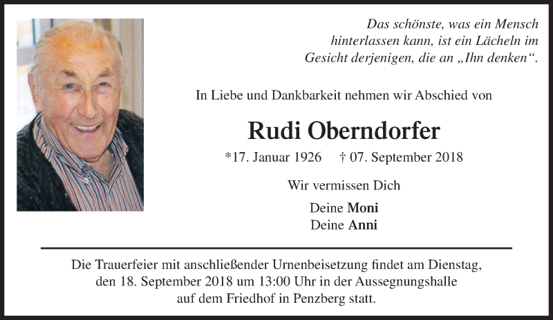 Hier finden Sie alle Traueranzeigen aus der Zeitung, die bisher für Rudi Oberndorfer erschienen sind. Weitere Traueranzeigen, die in der Zeitung erscheinen, werden hier ebenfalls aufgelistet