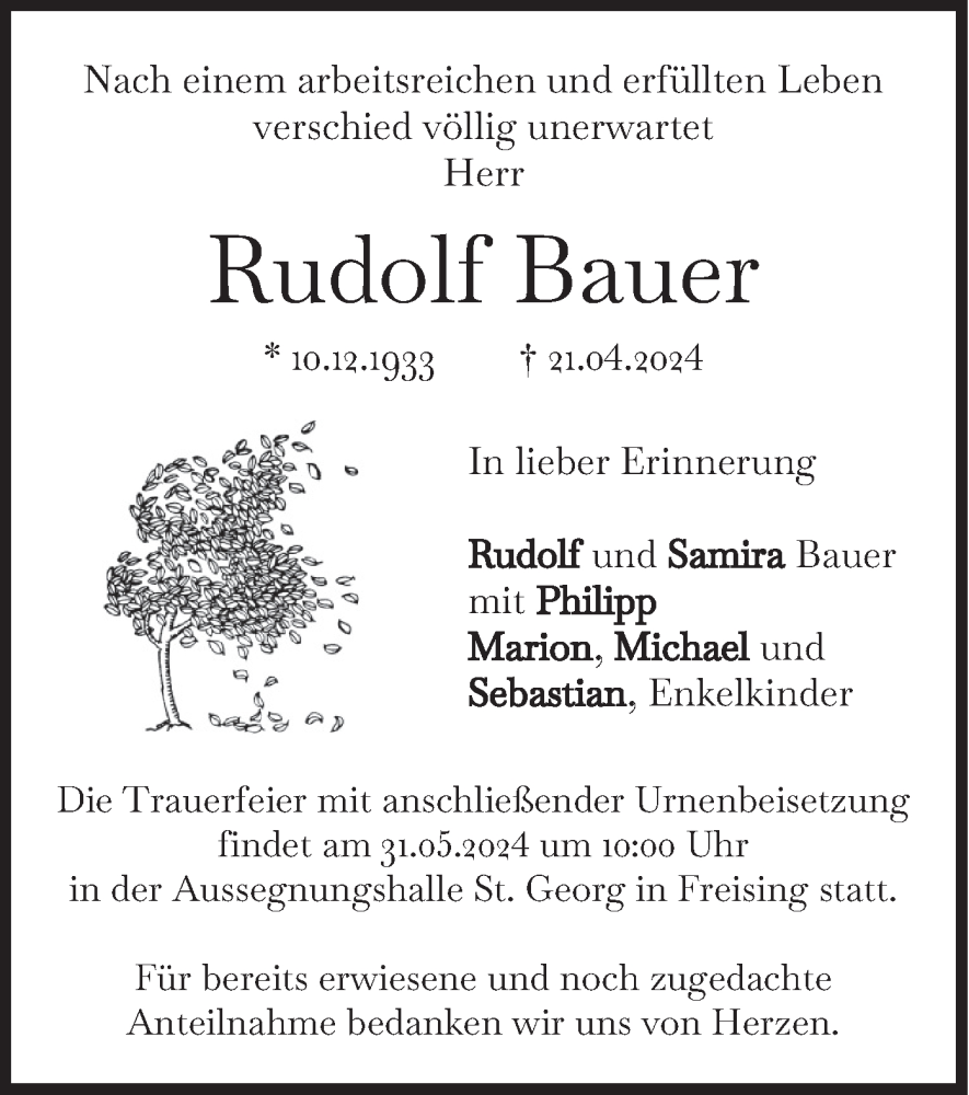 Hier finden Sie alle Traueranzeigen aus der Zeitung, die bisher für Rudolf Bauer erschienen sind. Weitere Traueranzeigen, die in der Zeitung erscheinen, werden hier ebenfalls aufgelistet