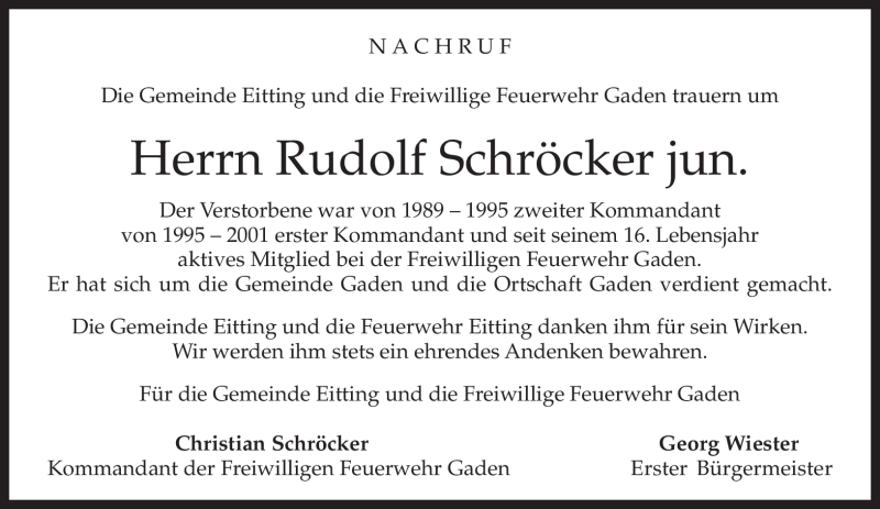 Hier finden Sie alle Traueranzeigen aus der Zeitung, die bisher für Rudolf Schröcker erschienen sind. Weitere Traueranzeigen, die in der Zeitung erscheinen, werden hier ebenfalls aufgelistet