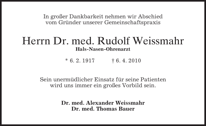 Hier finden Sie alle Traueranzeigen aus der Zeitung, die bisher für Rudolf Weissmahr erschienen sind. Weitere Traueranzeigen, die in der Zeitung erscheinen, werden hier ebenfalls aufgelistet