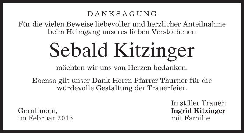 Hier finden Sie alle Traueranzeigen aus der Zeitung, die bisher für Sebald Kitzinger erschienen sind. Weitere Traueranzeigen, die in der Zeitung erscheinen, werden hier ebenfalls aufgelistet