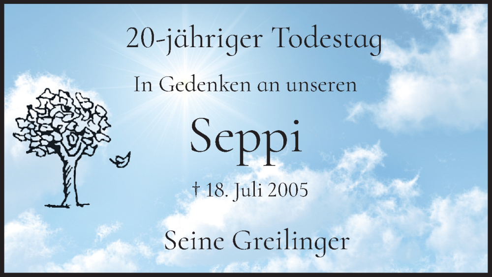 Hier finden Sie alle Traueranzeigen aus der Zeitung, die bisher für Seppi Fichtner erschienen sind. Weitere Traueranzeigen, die in der Zeitung erscheinen, werden hier ebenfalls aufgelistet