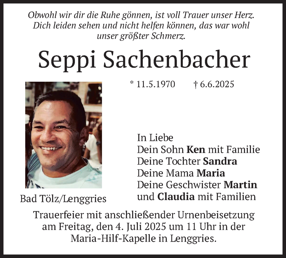 Hier finden Sie alle Traueranzeigen aus der Zeitung, die bisher für Seppi Sachenbacher erschienen sind. Weitere Traueranzeigen, die in der Zeitung erscheinen, werden hier ebenfalls aufgelistet