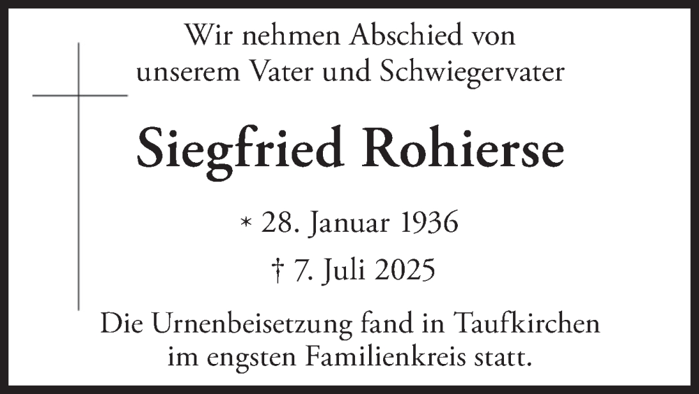 Hier finden Sie alle Traueranzeigen aus der Zeitung, die bisher für Siegfried Rohierse erschienen sind. Weitere Traueranzeigen, die in der Zeitung erscheinen, werden hier ebenfalls aufgelistet