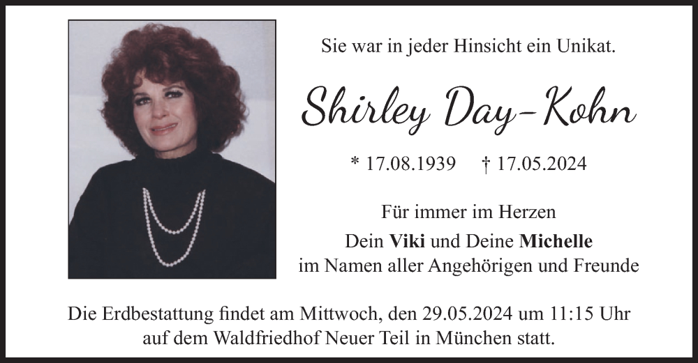 Hier finden Sie alle Traueranzeigen aus der Zeitung, die bisher für SitShirley DAy-Kohn erschienen sind. Weitere Traueranzeigen, die in der Zeitung erscheinen, werden hier ebenfalls aufgelistet