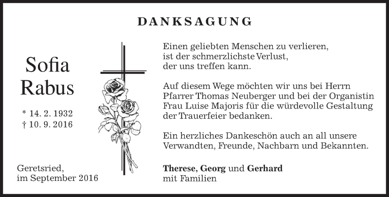 Hier finden Sie alle Traueranzeigen aus der Zeitung, die bisher für Sofia Rabus erschienen sind. Weitere Traueranzeigen, die in der Zeitung erscheinen, werden hier ebenfalls aufgelistet