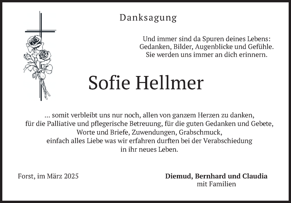 Hier finden Sie alle Traueranzeigen aus der Zeitung, die bisher für Sofie Hellmer erschienen sind. Weitere Traueranzeigen, die in der Zeitung erscheinen, werden hier ebenfalls aufgelistet