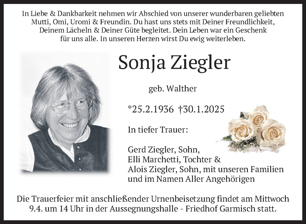 Hier finden Sie alle Traueranzeigen aus der Zeitung, die bisher für Sonja Ziegler erschienen sind. Weitere Traueranzeigen, die in der Zeitung erscheinen, werden hier ebenfalls aufgelistet