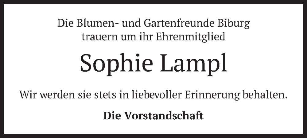 Hier finden Sie alle Traueranzeigen aus der Zeitung, die bisher für Sophie Lampl erschienen sind. Weitere Traueranzeigen, die in der Zeitung erscheinen, werden hier ebenfalls aufgelistet