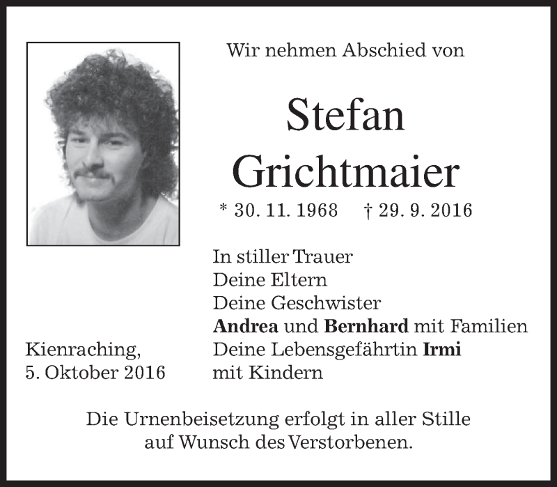Hier finden Sie alle Traueranzeigen aus der Zeitung, die bisher für Stefan Grichtmaier erschienen sind. Weitere Traueranzeigen, die in der Zeitung erscheinen, werden hier ebenfalls aufgelistet