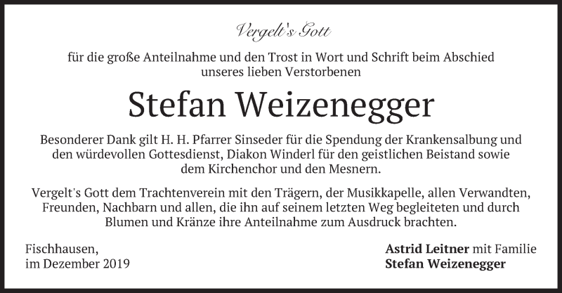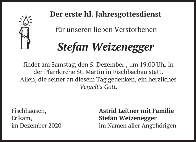 Hier finden Sie alle Traueranzeigen aus der Zeitung, die bisher für Stefan Weizenegger erschienen sind. Weitere Traueranzeigen, die in der Zeitung erscheinen, werden hier ebenfalls aufgelistet