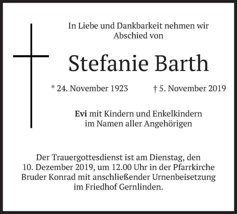 Hier finden Sie alle Traueranzeigen aus der Zeitung, die bisher für Stefanie Barth erschienen sind. Weitere Traueranzeigen, die in der Zeitung erscheinen, werden hier ebenfalls aufgelistet